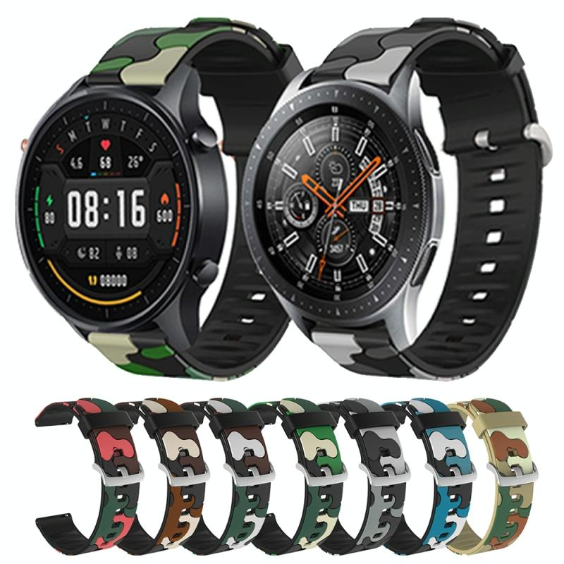 Λουράκι ρολογιού σιλικόνης 20mm για Fossil Hybrid Smartwatch HR Καμουφλάζ με ασημένια αγκράφα (7)