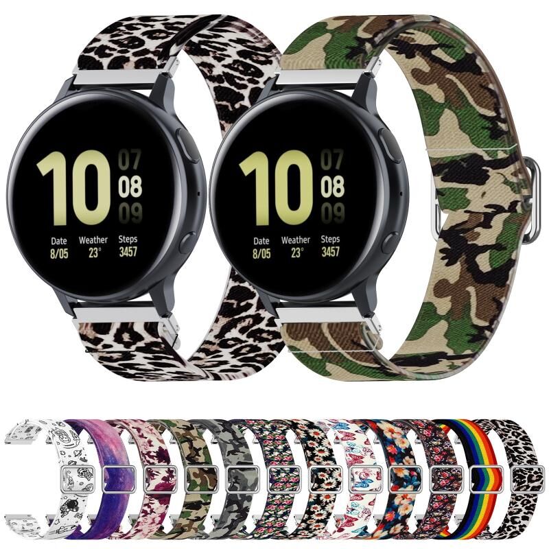 20mm For Samsung Galaxy Watch Active2 / Active Adjustable Elastic Printing Watch Band(Leopard)
