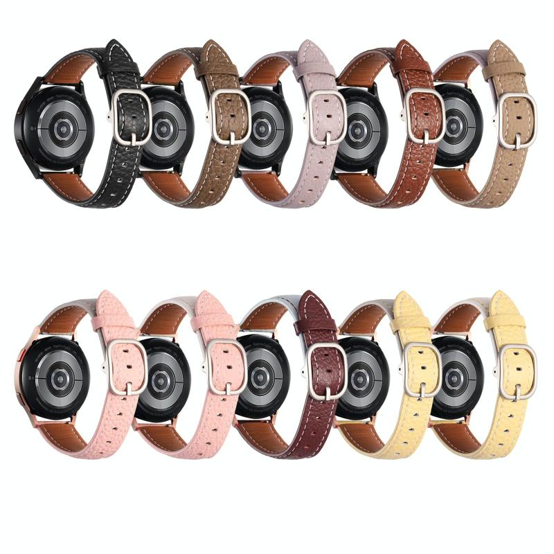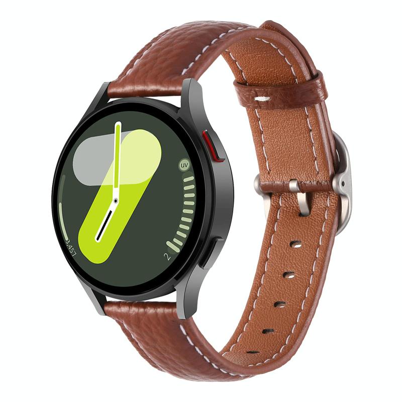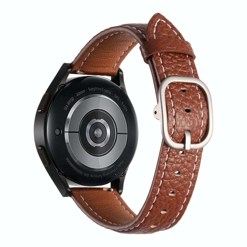 20mm Litchi Texture Square Buckle Genuine Leather Watch Band(Brown)