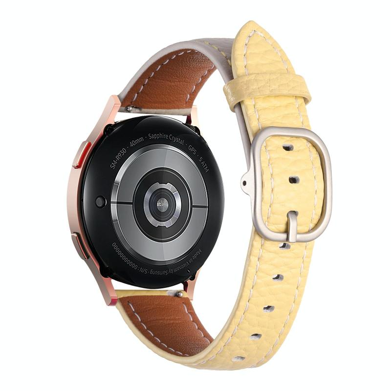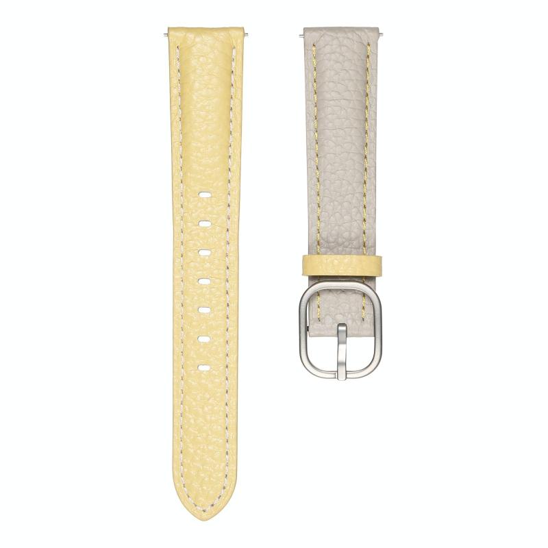 20mm Litchi Texture Square Buckle Genuine Leather Watch Band(Gray+Yellow)