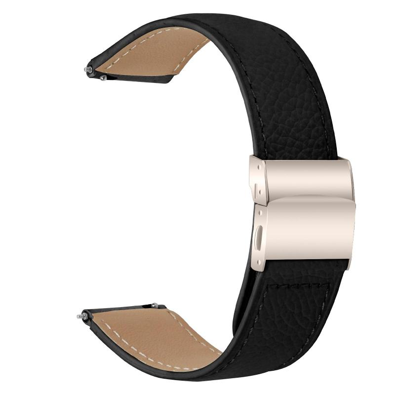 20mm Lychee Texture Starlight Turtle Back Buckle Leather Watch Band(Black)