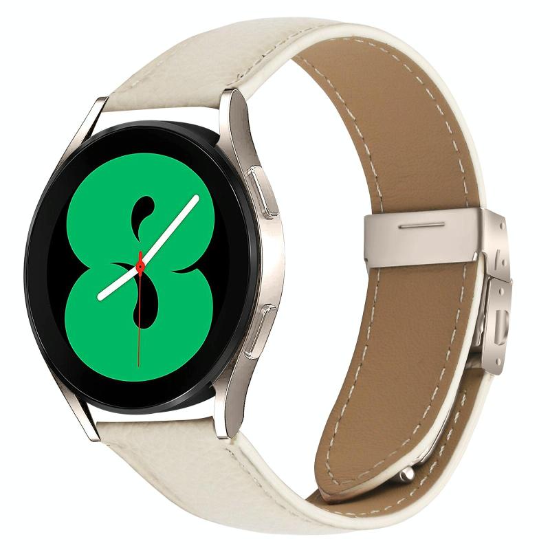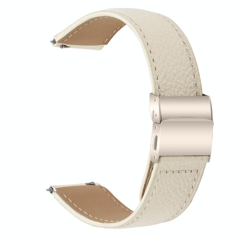 20mm Lychee Texture Starlight Turtle Back Buckle Leather Watch Band(Creamy White)