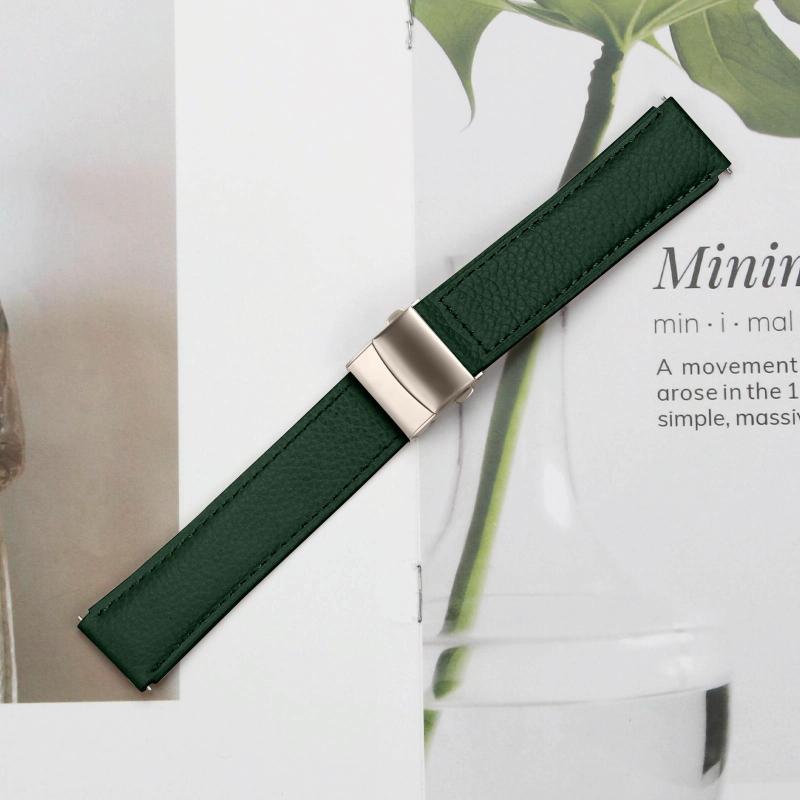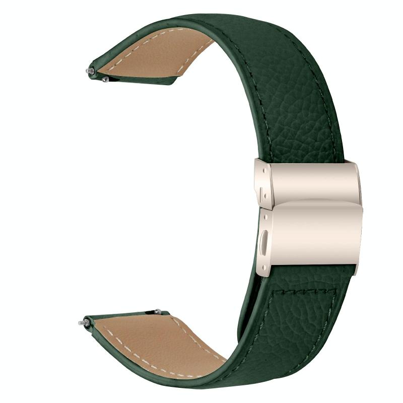 20mm Lychee Texture Starlight Turtle Back Buckle Leather Watch Band(Green)
