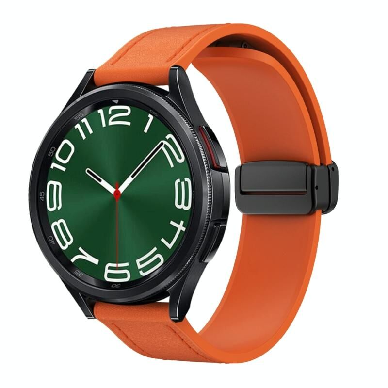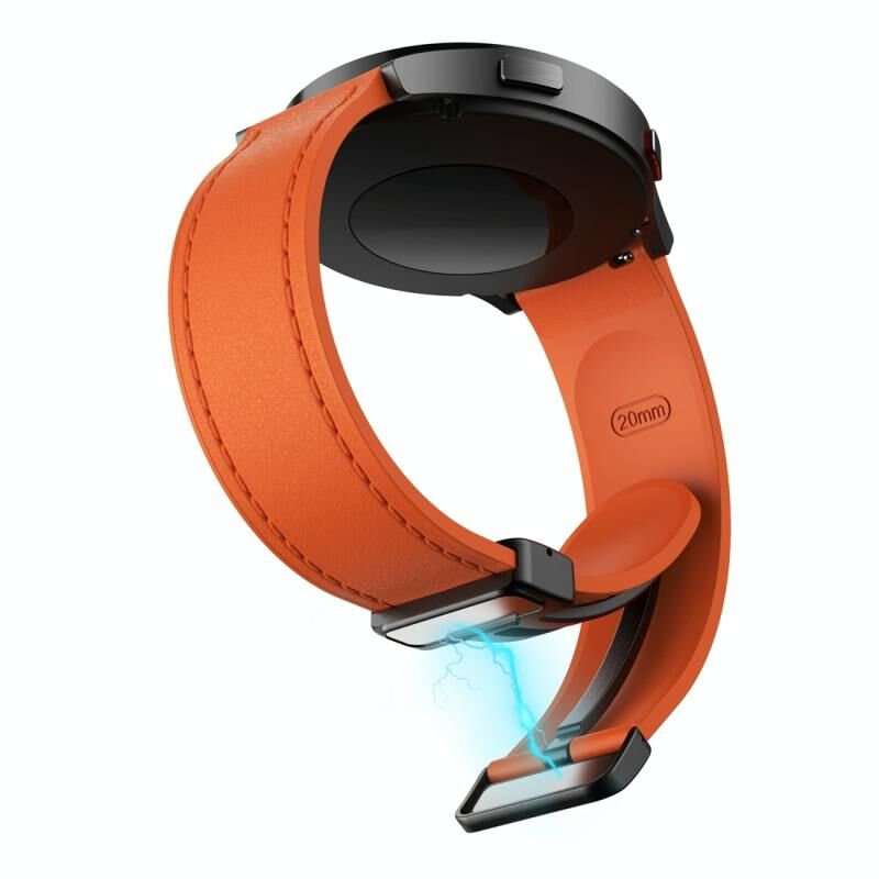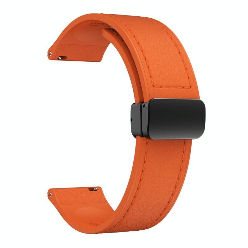 20mm μαγνητική μαύρη πόρπη σιλικόνης δερμάτινη ζώνη ρολογιού (πορτοκαλί)