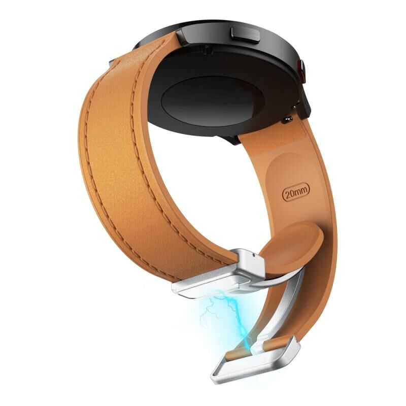 20mm μαγνητική ασημένια πόρπη σιλικόνης δερμάτινη ζώνη ρολογιού (ανοιχτό καφέ)