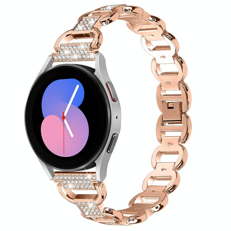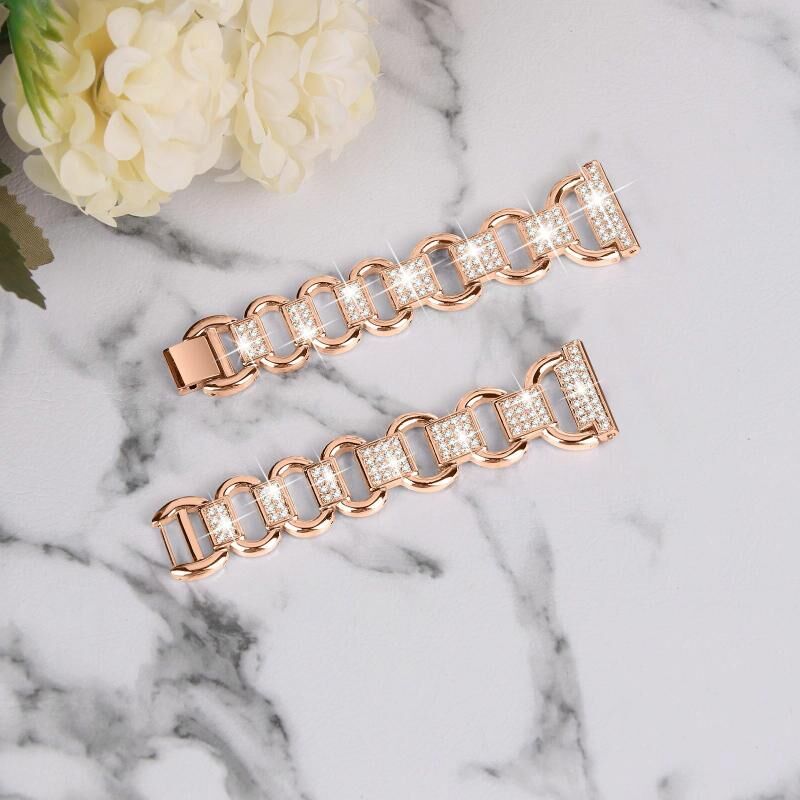 20mm Oval Diamond Stainless Steel Watch Band(Rose Gold)