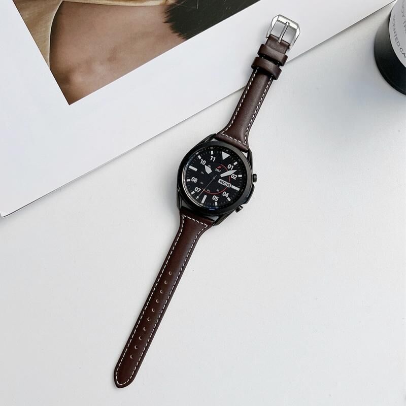 20mm Sewing Plain Weave Small Waist Leather Watch Band(Brown)