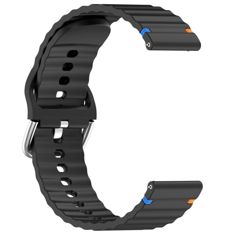 20mm Silver Steel Buckle Wavy Grain Stitched Silicone Watch Band(Black)