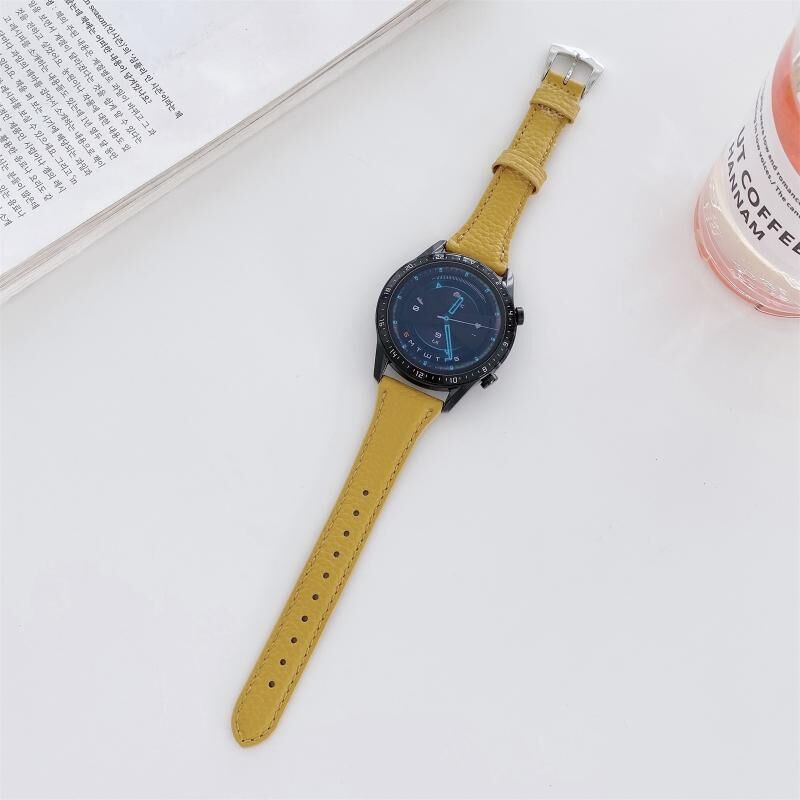 20mm Small Waist Lychee Texture Leather Watch Band(Yellow)