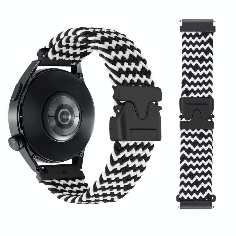 20mm Snap Button Nylon Braided Watch Band (Wave Pattern Μαύρο Λευκό)