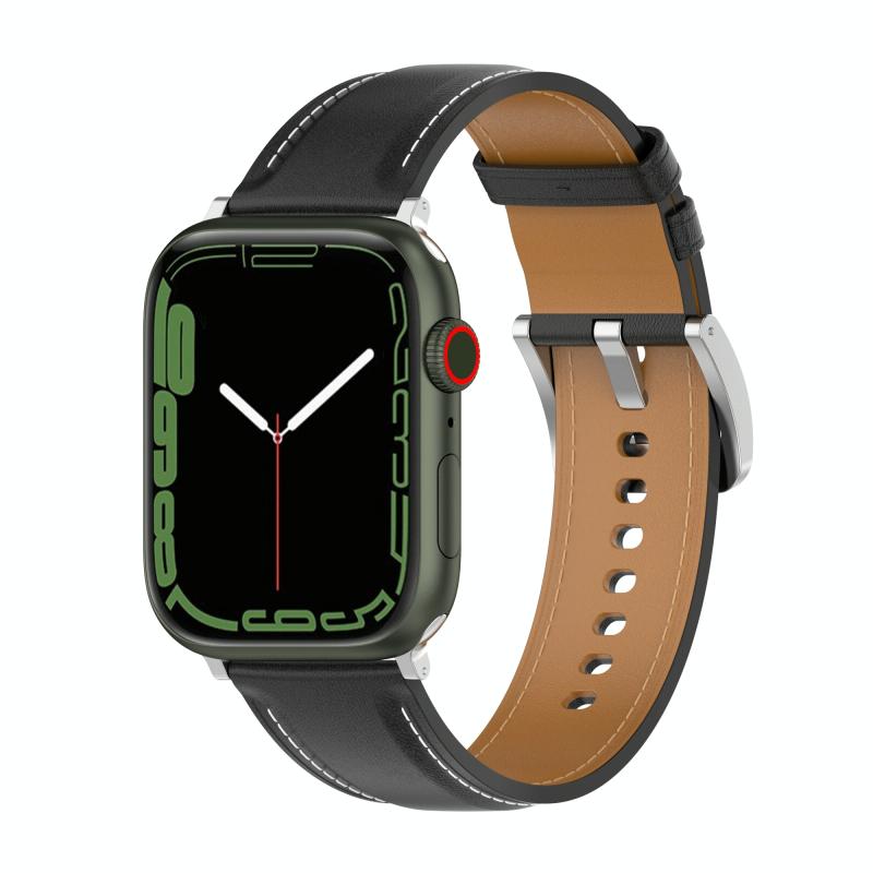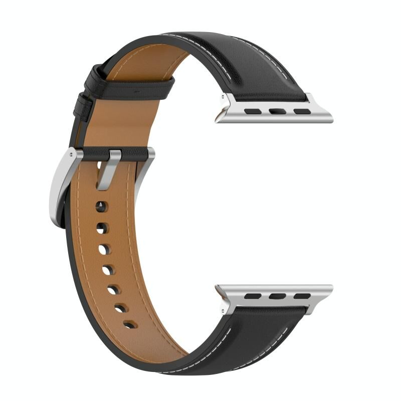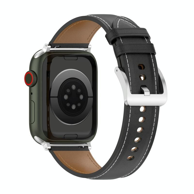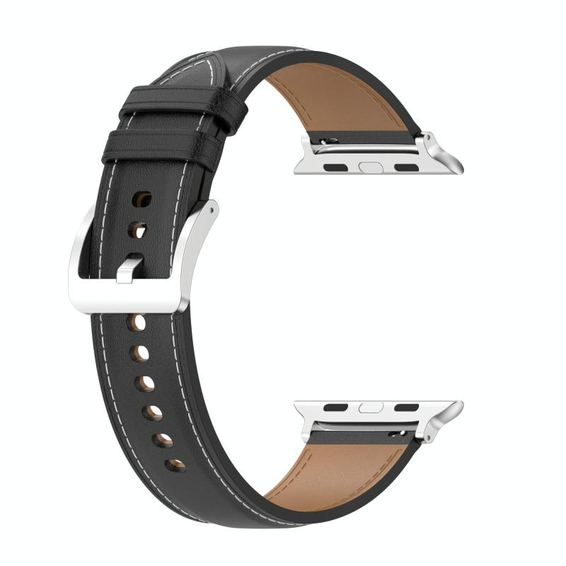 Λουρί ρολογιού ραφής από δέρμα αγελάδας με επάνω στρώση 20mm για Apple Watch Ultra 49mm & Watch Ultra 2 49mm / Series 9 & 8 & 7 45mm / SE 3 & SE 2 & 6 & SE & 5 & 4 44mm / 3 & 2 & 1 42mm (Μαύρο)