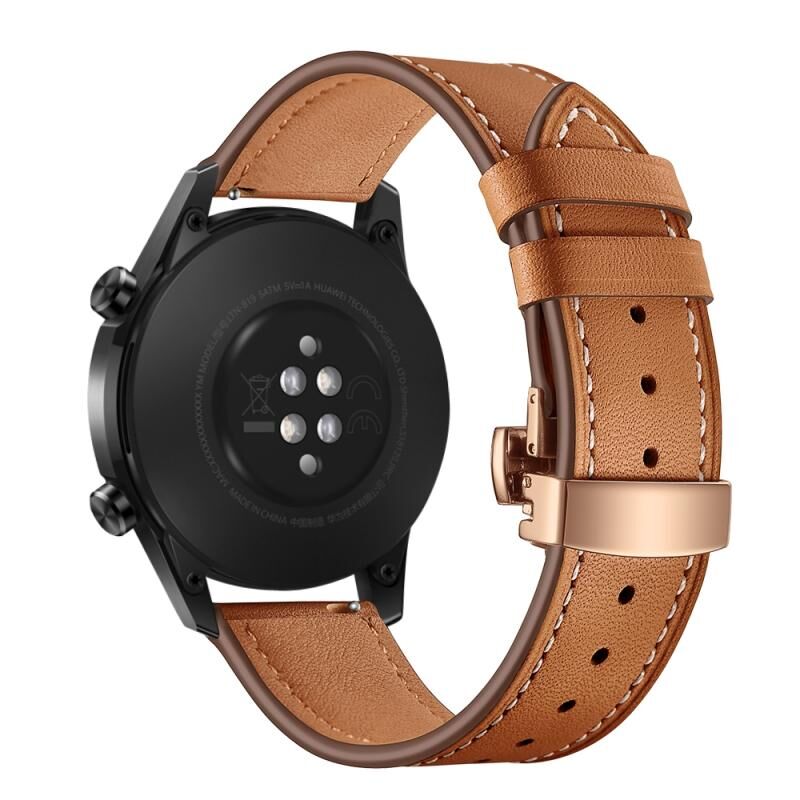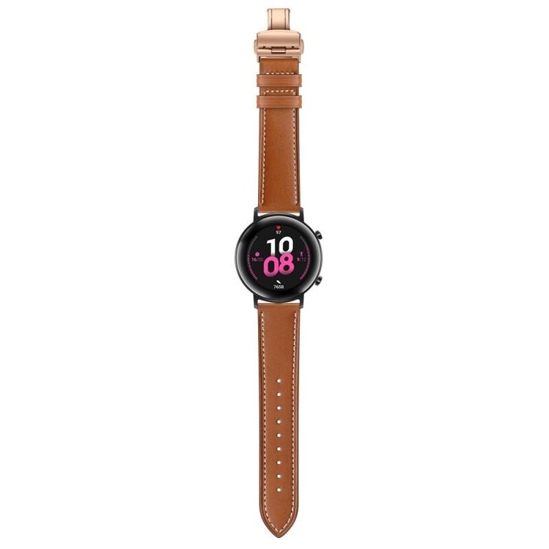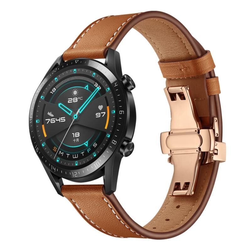 20mm Universal Butterfly Buckle Leather Watch Band, Style:Rose Gold Buckle(Brown)