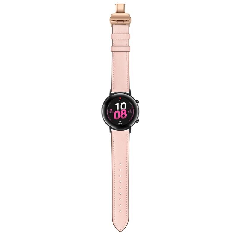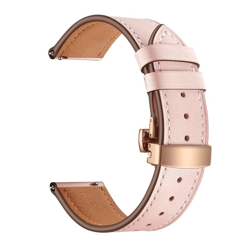 20mm Universal Butterfly Buckle Leather Watch Band, Style:Rose Gold Buckle(Pink)