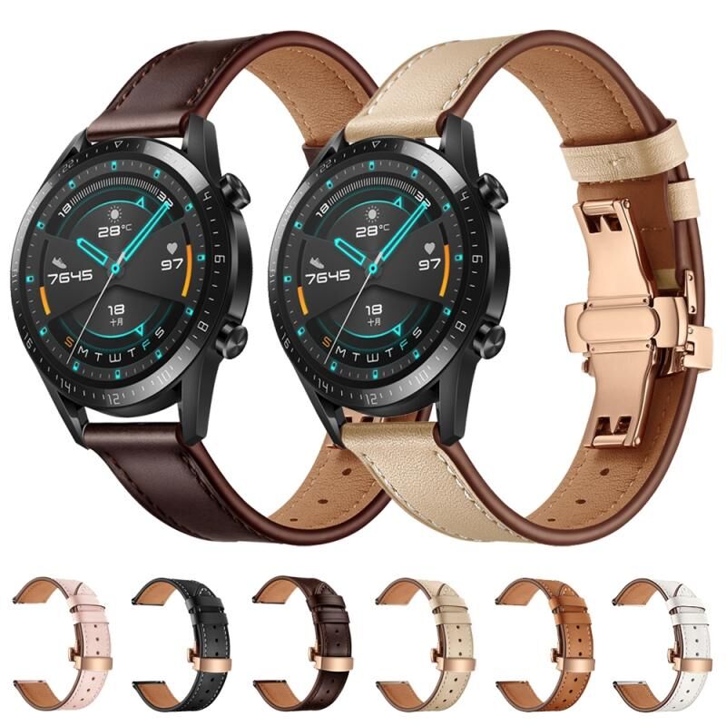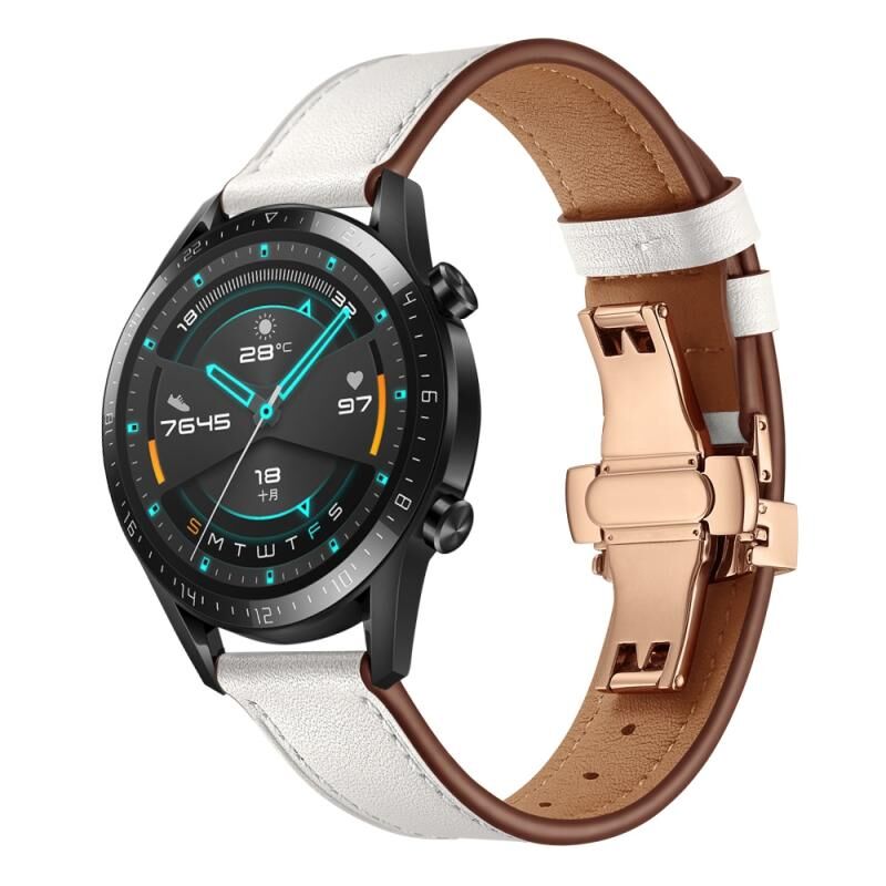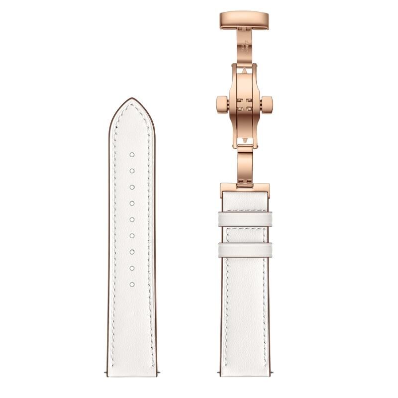 20mm Universal Butterfly Buckle Leather Watch Band, Style:Rose Gold Buckle(White)