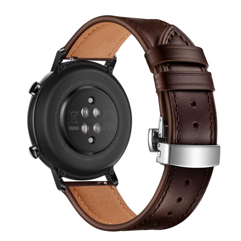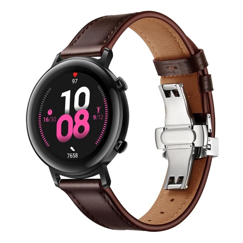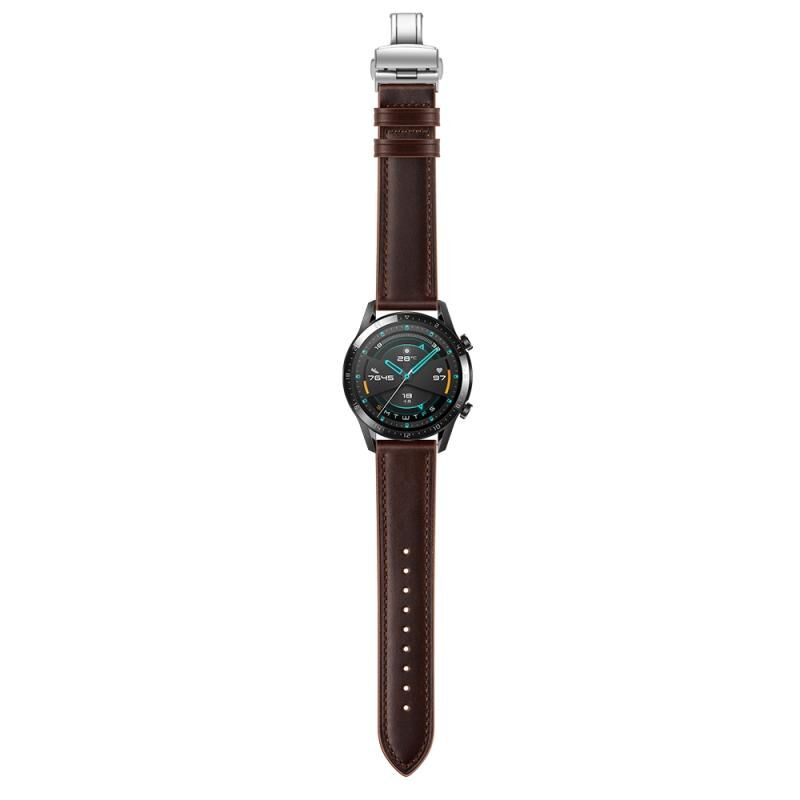 20mm Universal Butterfly Buckle Leather Watch Band, Style:Silver Buckle(Dark Brown)