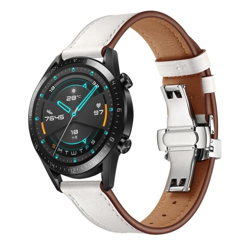 20mm Universal Butterfly Buckle Leather Watch Band, Style:Silver Buckle(White)