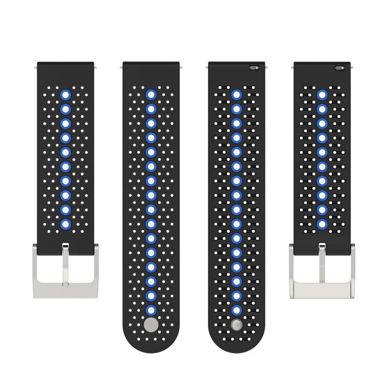 20mm Universal Colorful Hole Silicone Watch Band(Black Blue)