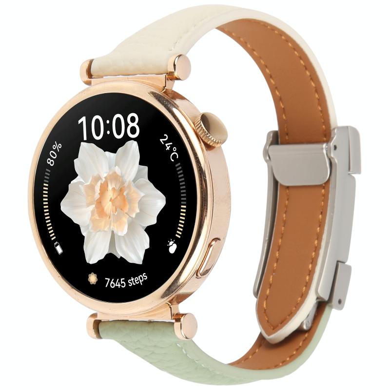 20mm Universal Slim Magnetic Buckle Genuine Leather Watch Band(Green Beige)