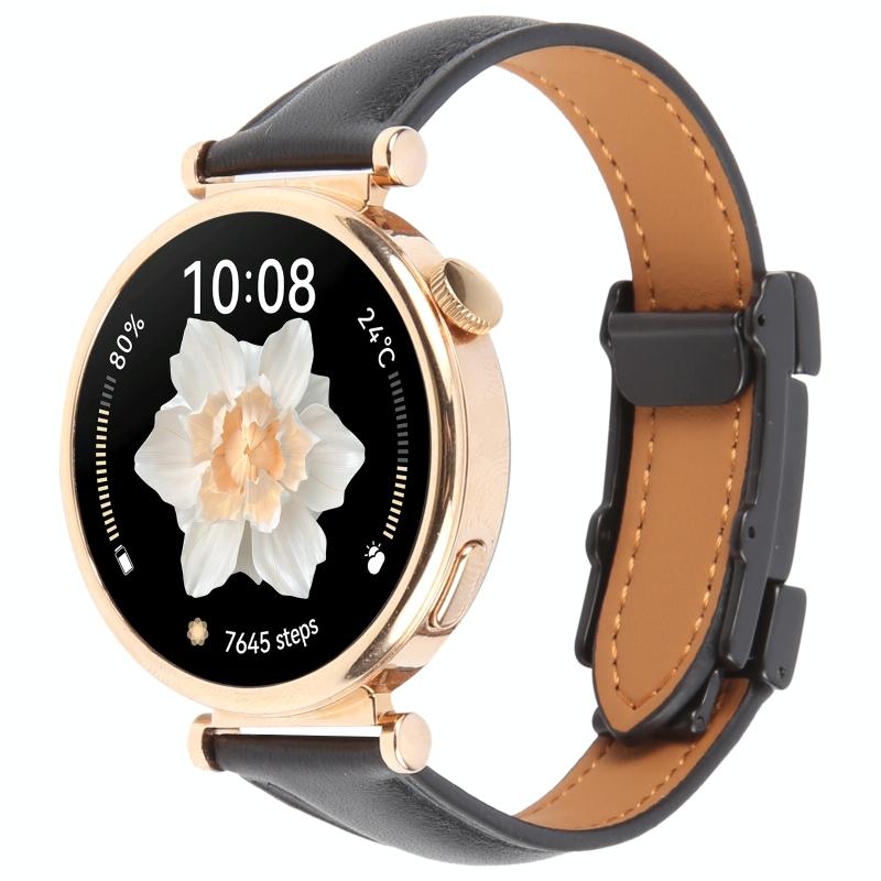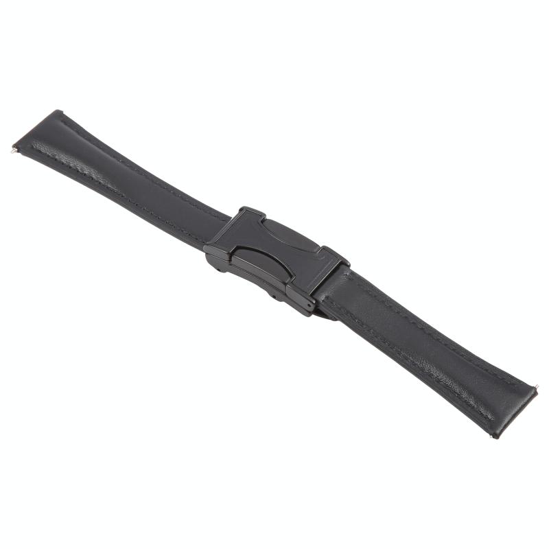 20mm Universal Slim Magnetic Buckle Genuine Leather Watch Band(Plain Weave Black)