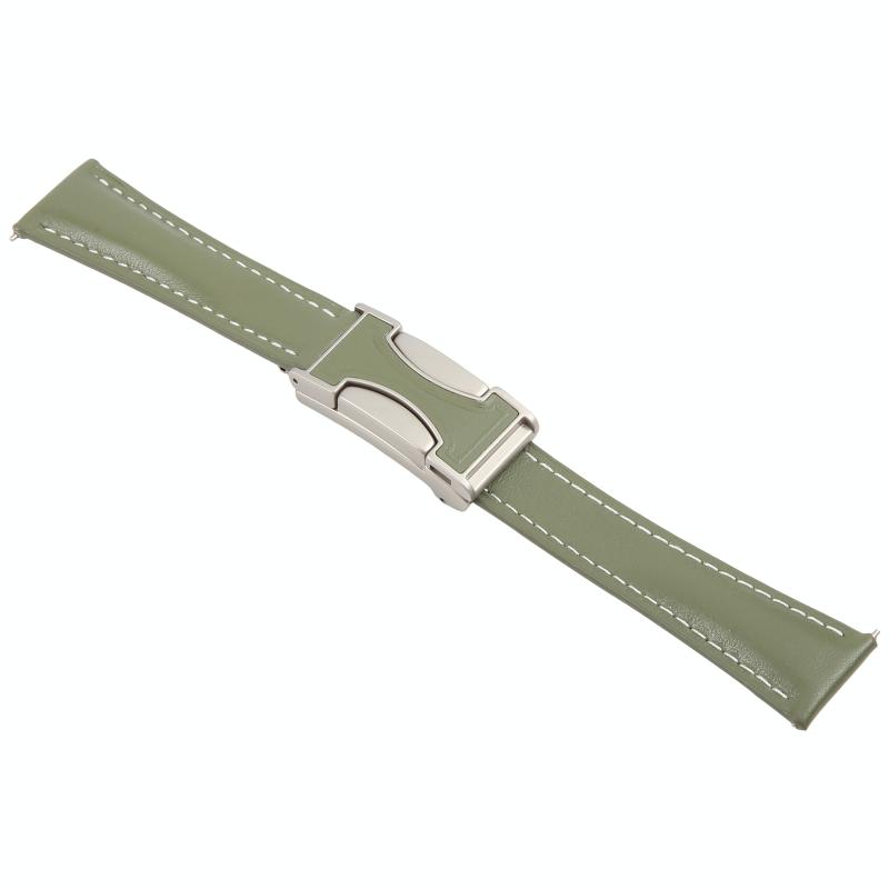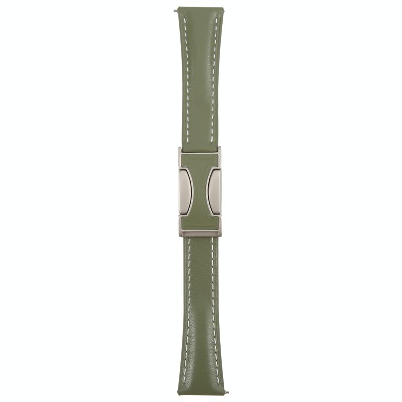 20mm Universal Slim Magnetic Buckle Genuine Leather Watch Band(Plain Weave Green)
