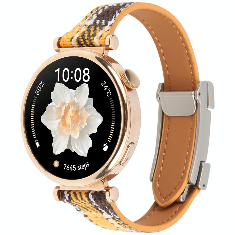 20mm Universal Slim Magnetic Buckle Napped Fabric Leather Watch Band(Yellow)