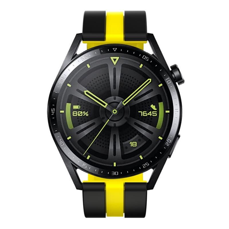 20 χιλιοστά Κάθετη ζώνη ρολογιού σιλικόνης δύο χρωμάτων (μαύρο + κίτρινο)