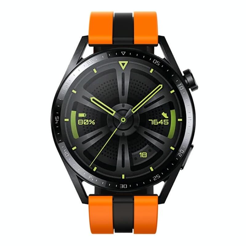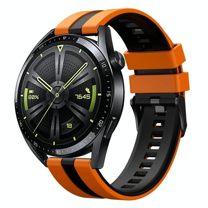 20 χιλιοστά Κάθετη ζώνη ρολογιού σιλικόνης δύο χρωμάτων (πορτοκαλί + μαύρο)