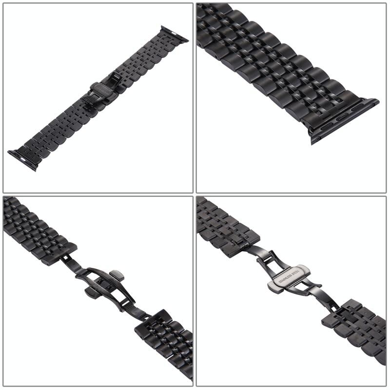 20mm Γυναικείο Κρυφό Κούμπωμα Πεταλούδας 7 Χάντρες Ζώνη Ρολογιού από Ανοξείδωτο Ατσάλι για Apple Watch 38mm (Μαύρο)