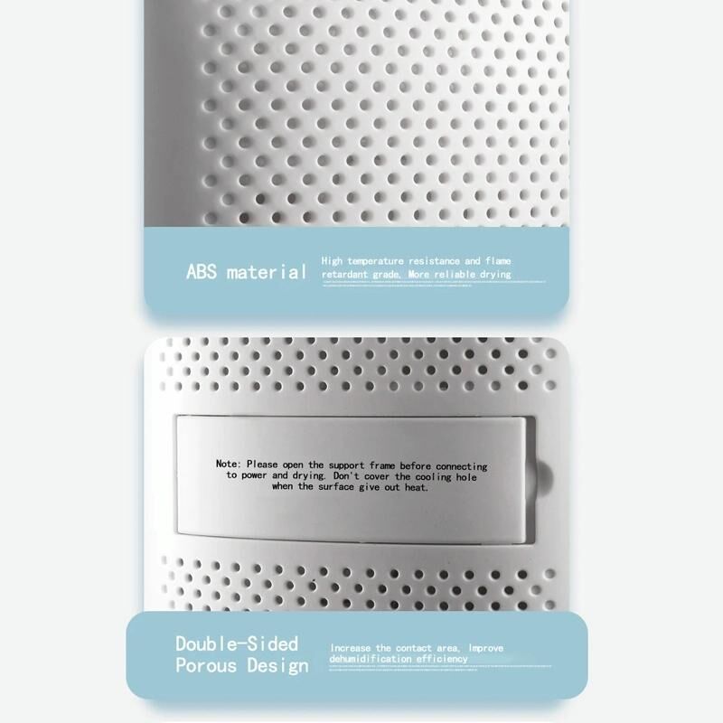 3. The power is as low as 20W, and the moisture absorption reaches the saturation level before drying. Drying only requires 1 kilowatt hour of electricity per month (please open the support frame when drying)