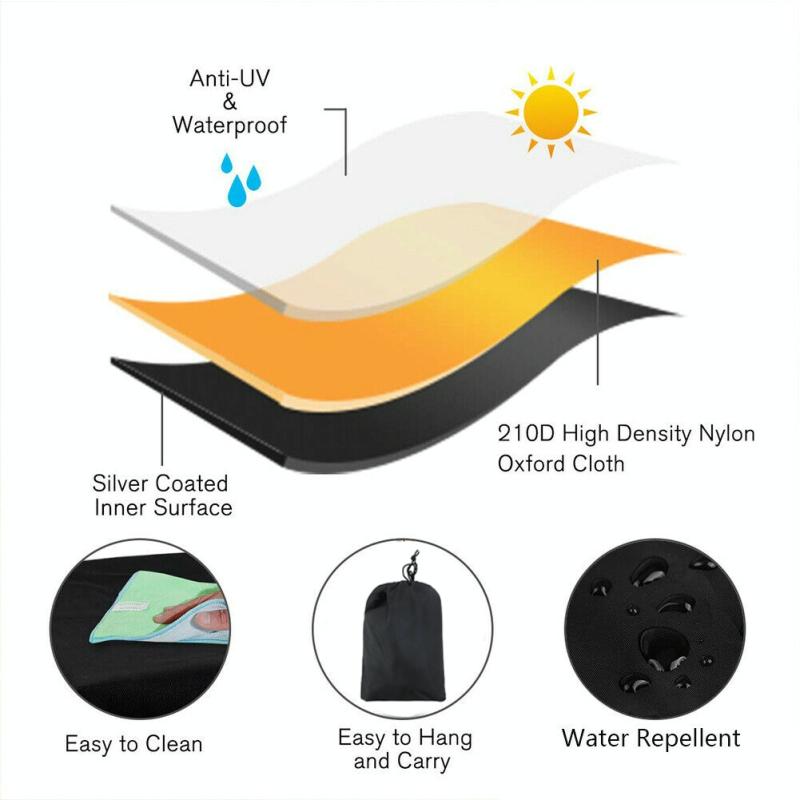 2. Υλικό: 210D ύφασμα Oxford με εσωτερική επίστρωση ασημί, πίεση νερού 1200MM, νανο υλικό φιλικό προς το περιβάλλον, διάρκεια ζωής ανθεκτική στη γήρανση, αντοχή στο νερό, η ανθεκτικότητα είναι καλύτερη από το πολυεστερικό υλικό.