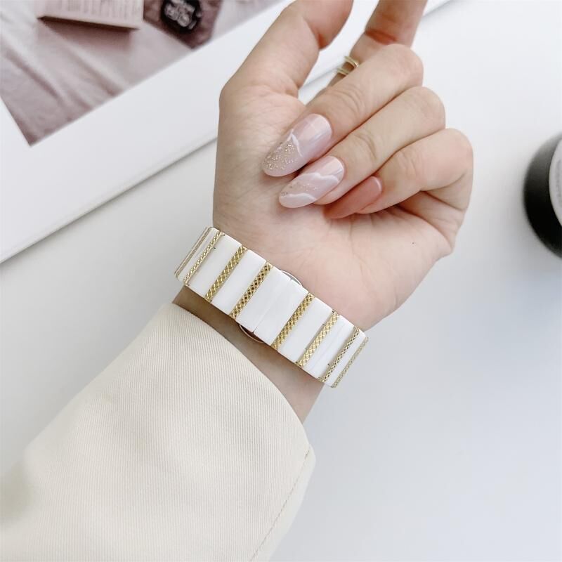 Μπρασελέ ρολογιού από ατσάλι με κεραμικό ένα-χάνι (Λευκόχρυσο) 22mm