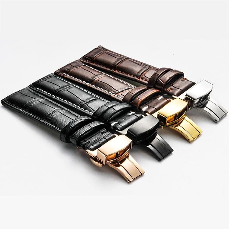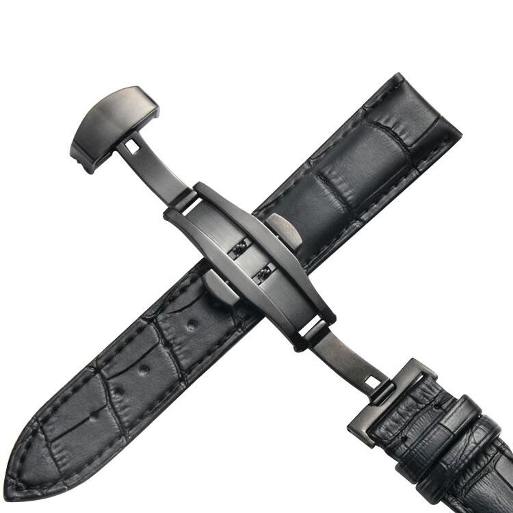 Λουρί ρολογιού από δέρμα αγελάδας κλασικού στυλ 22mm, μαύρο, με αγκράφα πεταλούδας (Μαύρο)
