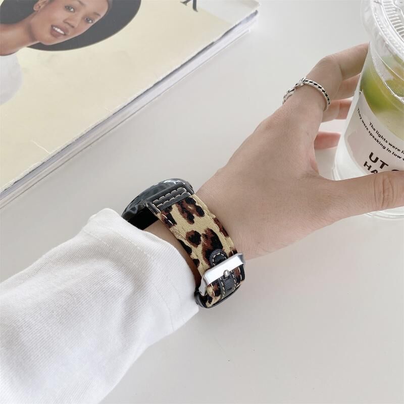 22mm Denim Leather Watch Band(Black Brown Grid)