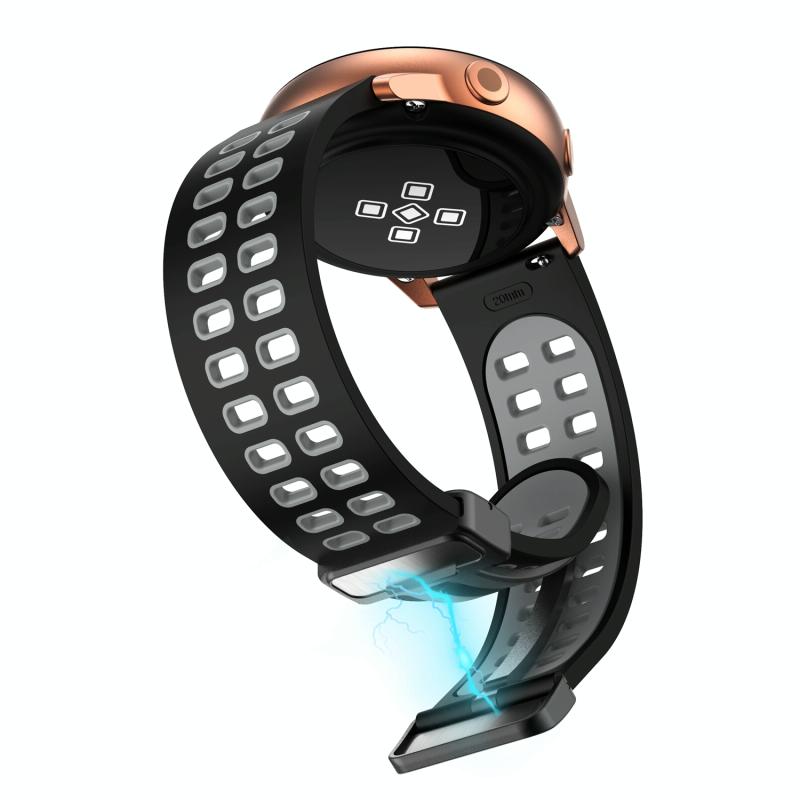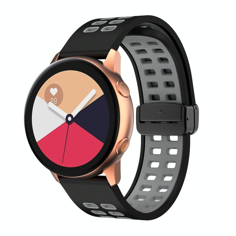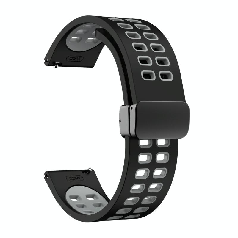 Λουράκι ρολογιού σιλικόνης διχρωμίας 22mm, διπλής σειράς με πτυσσόμενη αγκράφα, μαύρο (Μαύρο Γκρι)