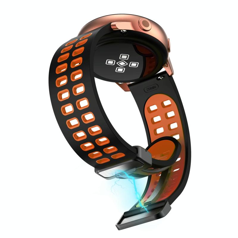 Λουράκι ρολογιού σιλικόνης διχρωμίας 22mm, διπλής σειράς με πτυσσόμενη αγκράφα, μαύρο (Μαύρο-Πράσινο)