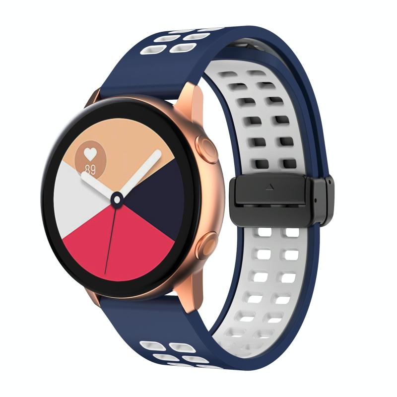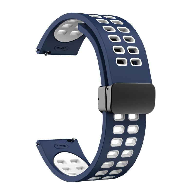 Λουράκι ρολογιού σιλικόνης διχρωμίας 22mm, διπλής σειράς με πτυσσόμενη αγκράφα, μαύρο (Μπλε της νύχτας - Μαύρο)