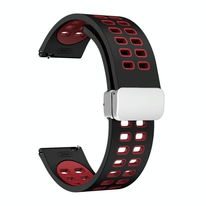 22mm διπλής σειράς τρύπα πτυσσόμενη ασημένια πόρπη δύο χρωμάτων ζώνη ρολογιού σιλικόνης (μαύρο κόκκινο)