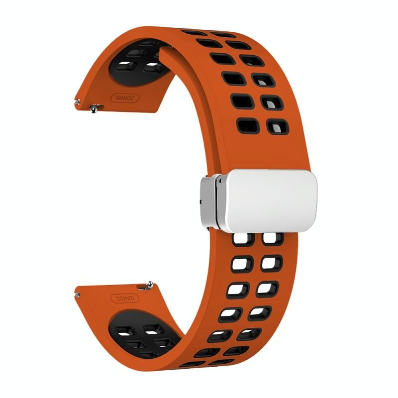 22mm διπλής σειράς τρύπα πτυσσόμενη ασημένια πόρπη δύο χρωμάτων ζώνη ρολογιού σιλικόνης (πορτοκαλί μαύρο)