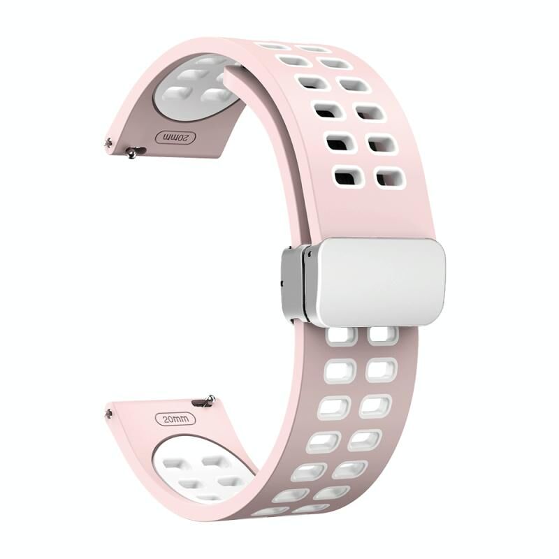 22mm διπλής σειράς τρύπα πτυσσόμενη ασημένια πόρπη δύο χρωμάτων ζώνη ρολογιού σιλικόνης (ροζ λευκό)