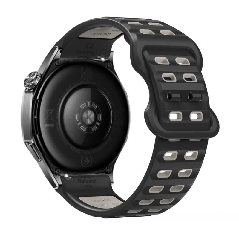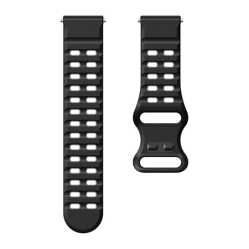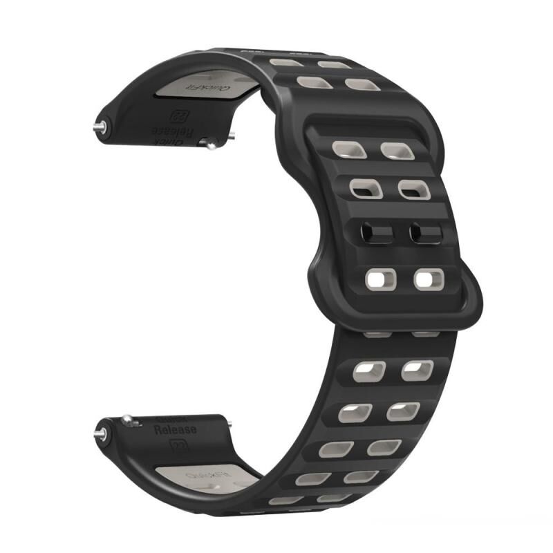 22mm Double-row Hole Studded Buckle Silicone Watch Band(Black Grey)