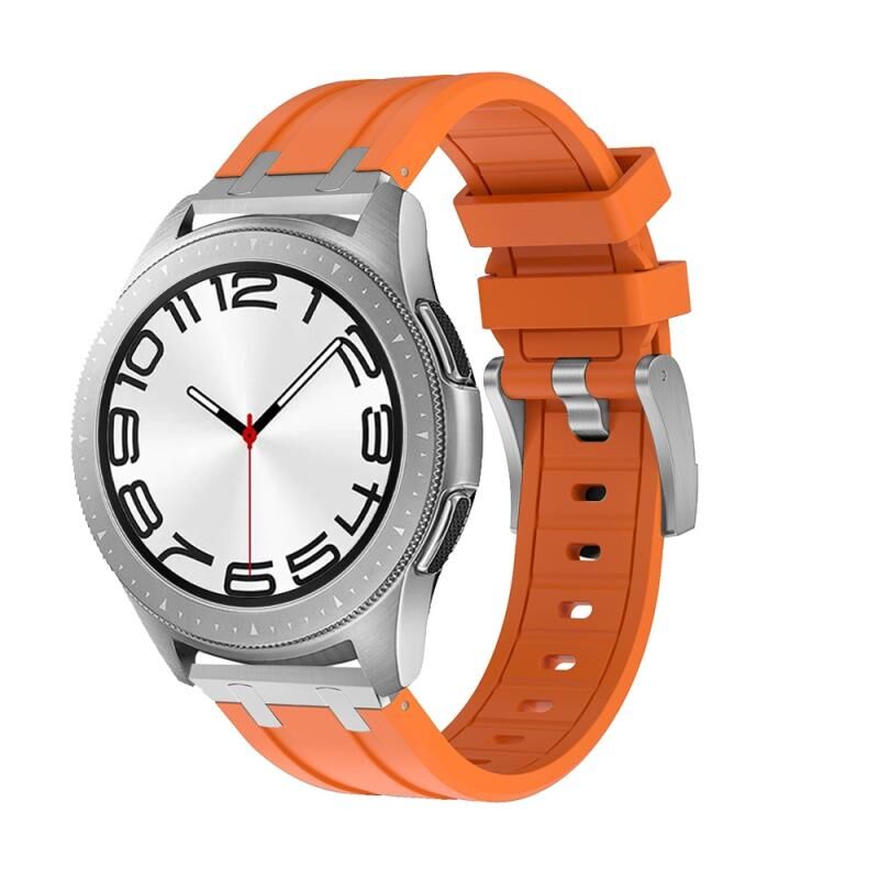 22mm Flat Head Silicone Watch Band(Silver Orange)
