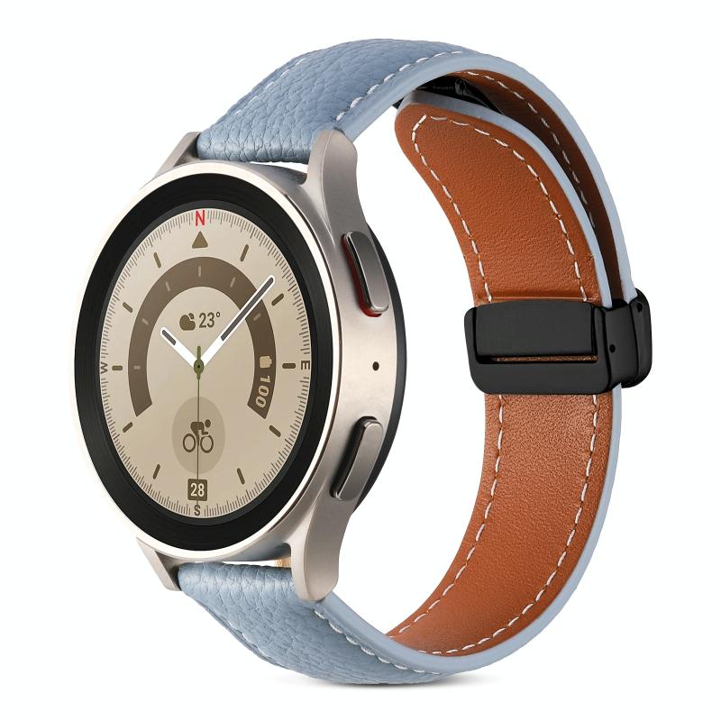Λουρί ρολογιού από γνήσιο δέρμα με αναδιπλούμενη αγκράφα 22mm (Μπλε)