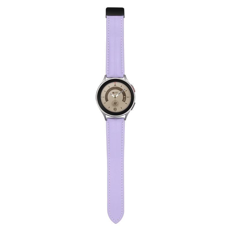 22mm Folding Buckle Grooved Genuine Leather Watch Band, Black Buckle(Purple)