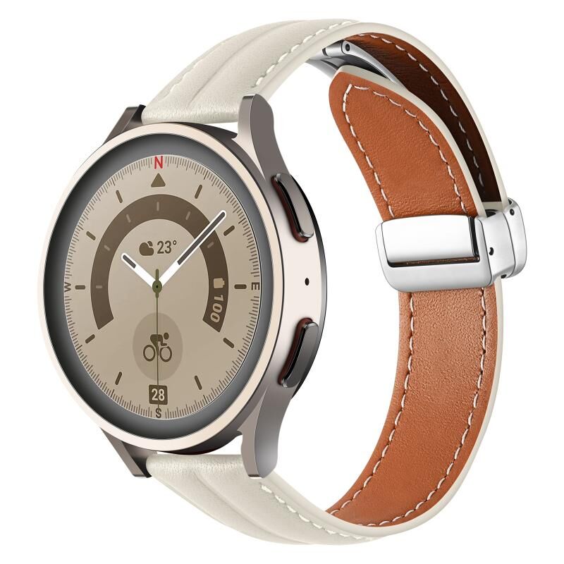22mm Folding Buckle Grooved Genuine Leather Watch Band, Silver Buckle(Off White)