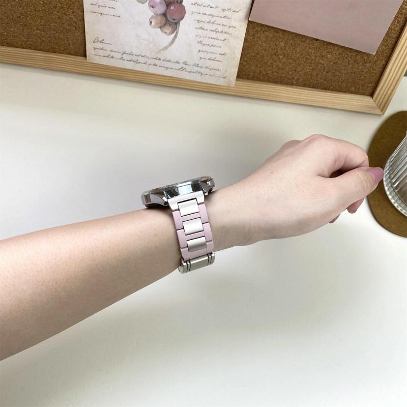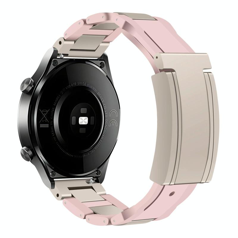 22mm Folding Magnetic Buckle Stainless Steel Rubber Watch Band(Pink+Starlight)