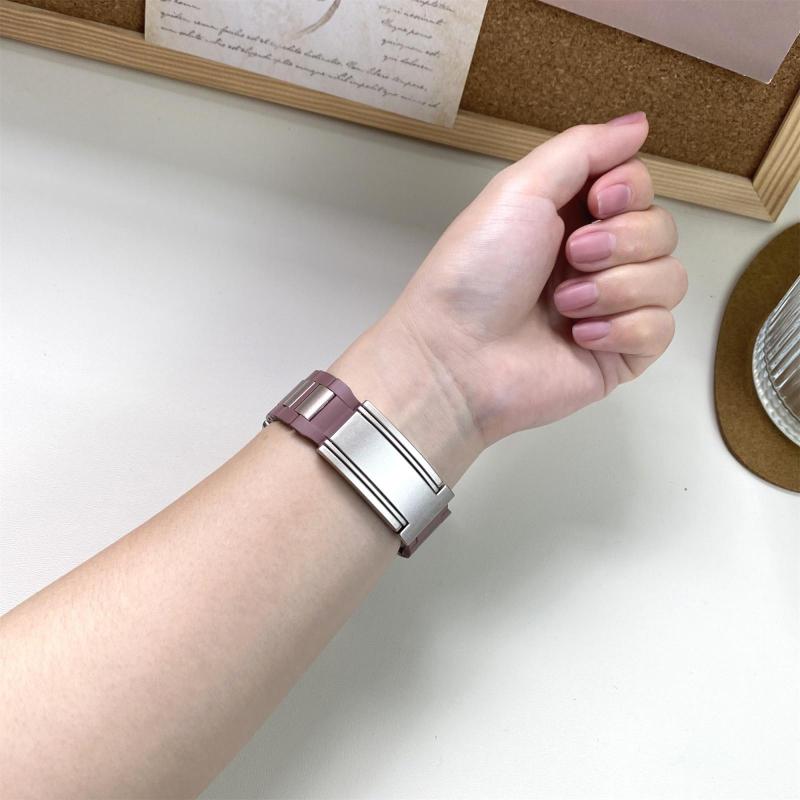 22mm Folding Magnetic Buckle Stainless Steel Rubber Watch Band(Purple+Starlight)