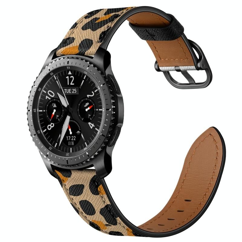 22mm For Samsung Galaxy Watch 46mm / Huawei Watch 3 / 3 Pro Universal Printed Leather Watch Band(Yellow Leopard)