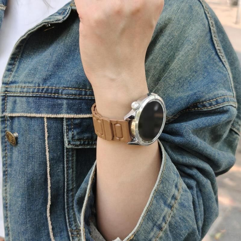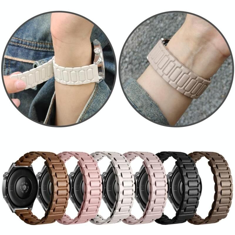 22mm I-shaped Three-piece Leather Magnetic Watch Band(Brown)