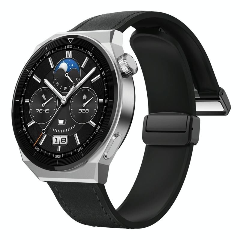 22mm Μαγνητική μαύρη πόρπη σιλικόνης δερμάτινη ζώνη ρολογιού (Μαύρο)