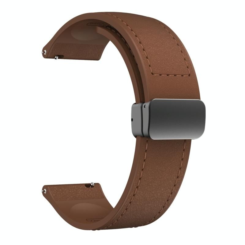 22mm Μαγνητική μαύρη πόρπη σιλικόνης δερμάτινη ζώνη ρολογιού (σκούρο καφέ)